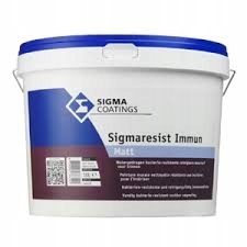 Sigmaresist Immun specjalistyczna farba przeznaczona do stosowania wewnątrz pomieszczeń. Stosować na podłożach mineralnych, takich jak beton, tynk cementowo-wapienny, płyty gipsowo-kartonowe i tapety z włókna szklanego. Ze względu na innowacyjną technologię jonów srebra skutecznie zwalcza szkodliwe dla zdrowia bakterie, które osiadają na powłoce farby. Zawarte w produkcie Sigmaresist Immun jony srebra ułatwiają zapewnienie optymalnych warunków higienicznych w użytkowanych pomieszczeniach. Szczególnie polecana do malowania w obiektach użyteczności publicznej, w tym służby zdrowia, takie jak szpitale, kliniki, gabinety lekarskie, sale operacyjne, przedszkola, szkoły, oraz pomieszczenia branży hotelarskiej i gastronomicznej. Nie chroni podłoża (np. tynku) przed rozwojem mikroorganizmów.