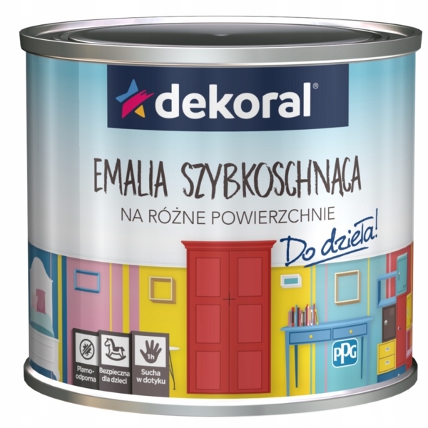 Emalia szybkoschnąca to nowoczesna, wodorozcieńczalna emalia akrylowa ogólnego stosowania. Przeznaczona jest do dekoracyjnego malowania przedmiotów z drewna, stalowych i żeliwnych uprzednio zagruntowanych podkładami antykorozyjnymi, eksploatowanych wewnątrz i na zewnątrz pomieszczeń, a także tynków wewnętrznych (lamperii) i kaloryferów. Specjalna formuła produktu zapewnia wysoką przyczepność oraz niezwykłą odporność powłoki. Jednocześnie nakładanie wyrobu jest łatwe i przyjemnie oraz szybkie - pomalowane powierzchnie są gotowe w 1 dzień. Dzięki ekologicznym i precyzyjnie dobranym nowoczesnym składnikom emalię tę można stosować nawet do malowania zabawek dziecięcych.