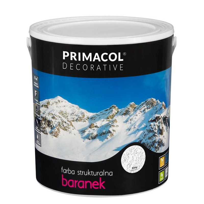 Farba akrylowa przeznaczona do dekoracyjnego malowania ścian i sufitów wewnątrz pomieszczeń.Dzięki zawartym w niej dodatkom mineralnym możemy uzyskać na ścianie efekt dekoracyjny tynku typu „baranek".
