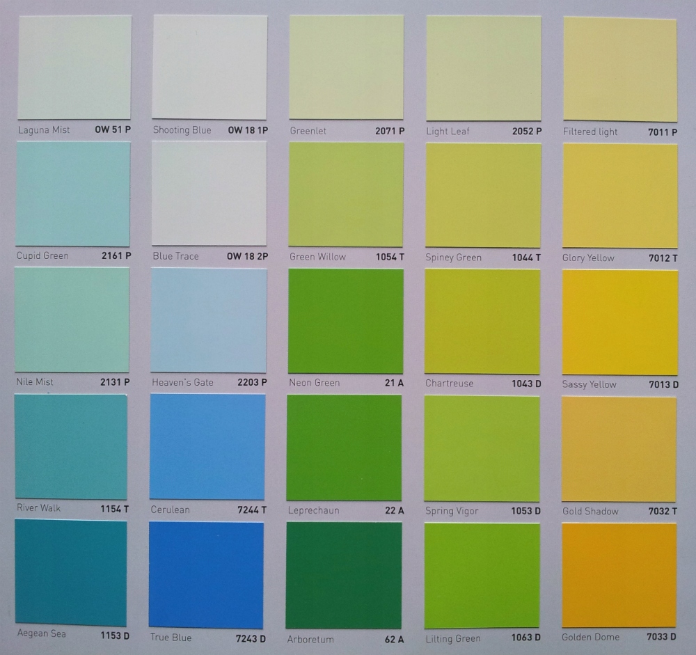 Farba GIOLLIFLOOR dostępna jest w 100 kolorach z wzornika umieszczonego na aukcji, dodatkowo na indywidualne zamówienia może być barwiona na kolory z wzorników NCS (około 1800 kolorów), RAL (około 180 kolorów) i innych.