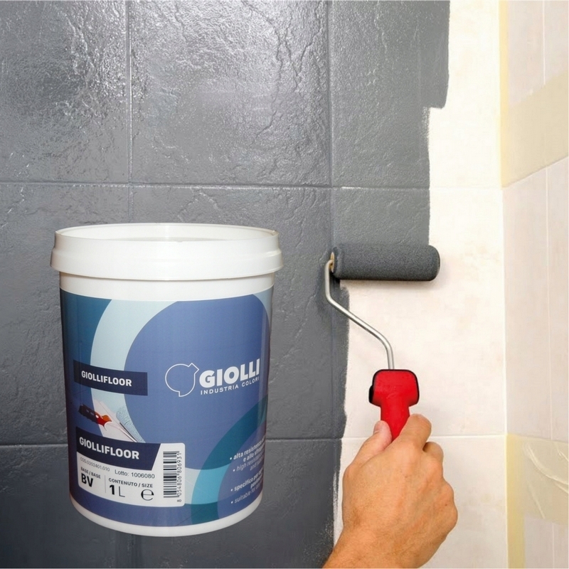 GIOLLIFLOOR to najwyższej jakości emalia dekoracyjna przeznaczona do renowacyjnego malowania płytek i glazury zarówno na ścianach jak i podłogach.