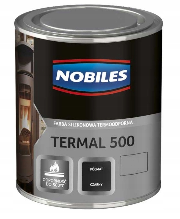 Nobiles Termal 500 to farba silikonowa przeznaczona do malowania i konserwacji powierzchni stalowych i żeliwnych m.in. układów wydechowych pojazdów, kominków, przewodów odprowadzających gazy z kominów i innych powierzchni narażonych na działanie wysokich temperatur do 500°C.