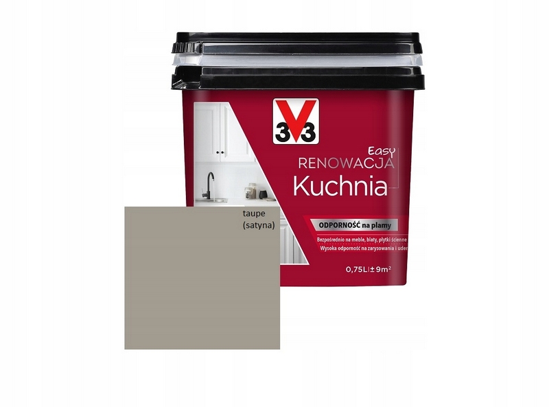 V33 Easy renowacja Kuchnia - farba do malowania płytek ceramicznych ściennych, mebli kuchennych, blatów w kolorze Taupe satyna w opakowaniu 0,75L