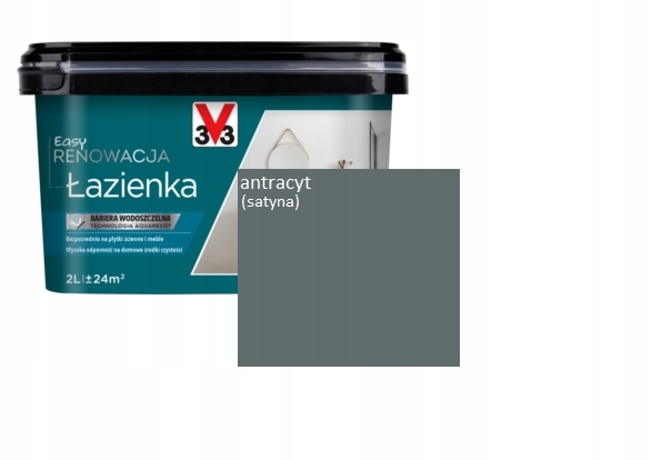 V33 Easy renowacja ŁAZIENKA - farba do malowania płytek ceramicznych ściennych, mebli łazienkowych, blatów umywalkowych w kolorze Antracyt satyna w opakowaniu 2L