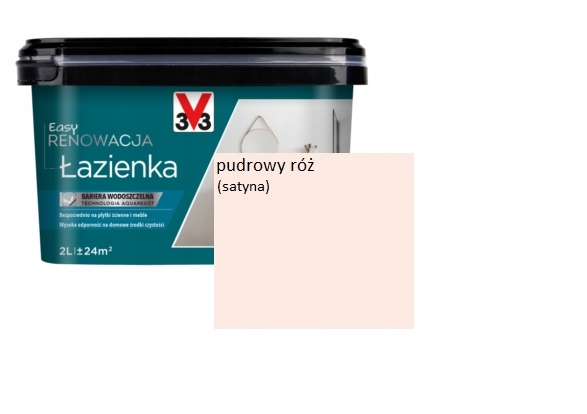 V33 Easy renowacja ŁAZIENKA - farba do malowania płytek ceramicznych ściennych, mebli łazienkowych, blatów umywalkowych w kolorze Pudrowy róż satyna w opakowaniu 2L