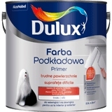 Dulux Trudne Powierzchnie jest farbą podkładową przeznaczoną do gruntowania i wykonywania pośrednich powłok malarskich na trudnych i gładkich podłożach takich jak glazura, szkło, laminat, PCV i MDF oraz stare powłoki farb wodnych, rozpuszczalnikowych oraz proszkowych. Zapewnia doskonałą przyczepność farb nawierzchniowych na trudnych powierzchniach wewnątrz i na zewnątrz pomieszczeń.