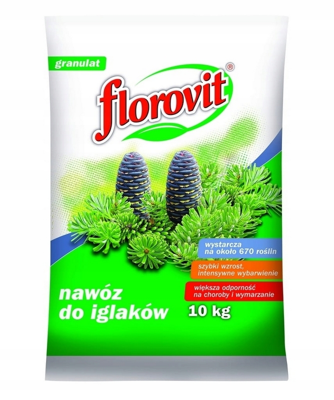 Florovit do roślin iglastych zawiera składniki mineralne w ilościach odpowiadających zapotrzebowaniu ozdobnych roślin iglastych takich jak cis, modrzew, cyprys, świerk, sosna, jodła i inne.