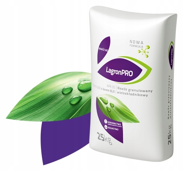 Lagron PRO – to wieloskładnikowy, granulowany nawóz o obniżonej zawartości chlorków, przeznaczony do nawożenia warzyw w uprawie polowej, roślin uprawnych szczególnie okopowych, takich jak ziemniaki i buraki, oraz drzew i krzewów owocowych. Dzięki wysokiej zawartości azotu oraz odpowiedniej proporcji makroskładników pokarmowych nawóz ten zapewnia uzyskanie wysokich i jakościowo dobrych plonów uprawianych roślin.