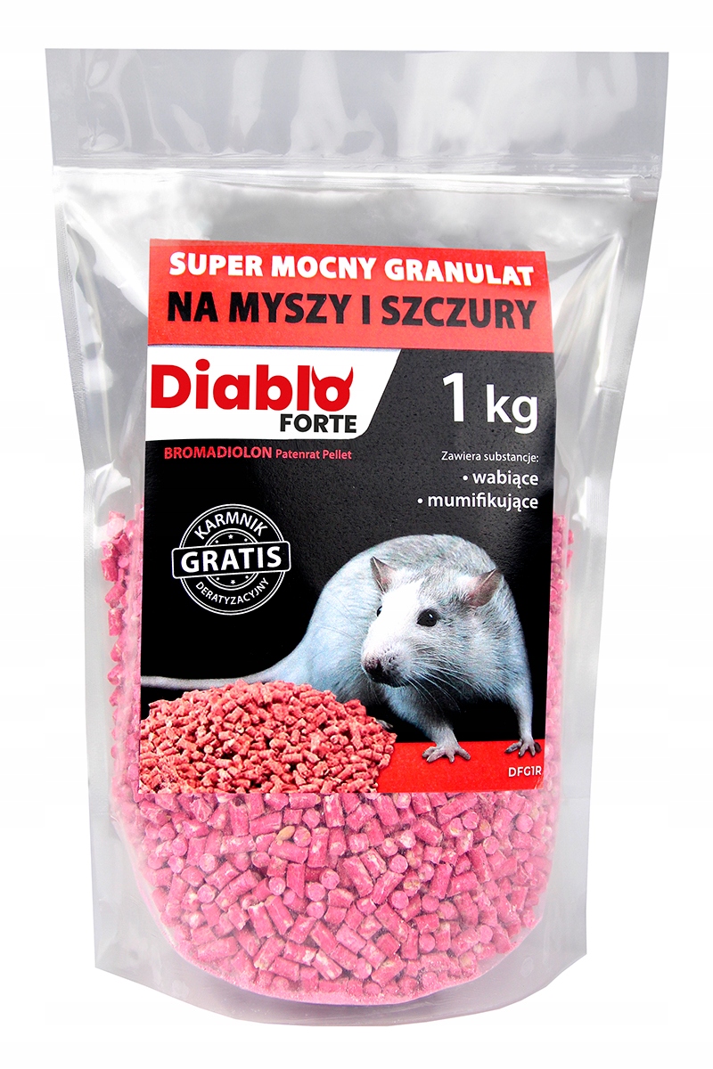 Diablo Forte to niezwykle skuteczna i wydajna trutka na myszy i szczury. Środek ma postać granulatu, który zawiera w swym składzie antykoagulant II generacji, czyli bromadiolon.