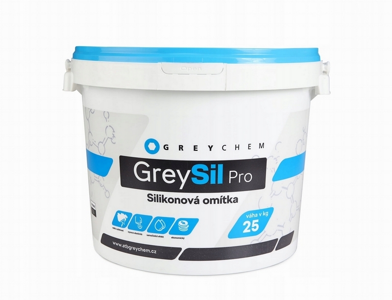 Cienkowarstwowy tynk silikonowy GreySil Pro produkowany jest na bazie wodnej dyspersji żywicy akrylowej z wypełniaczami mineralnymi, domieszkami modyfikującymi, hydrofobizatorami silikonowymi i pigmentami. Po stwardnieniu wodo- i mrozoodporna. Charakteryzuje się dużą przyczepnością i elastycznością, trwałością zabarwienia, wysoką odpornością na uderzenia oraz wpływ czynników atmosferycznych.Masa przeznaczona jest do ręcznego wykonywania dekoracyjnych, pocienionych wypraw tynkarskich na podłożach betonowych, mineralnych tynkach podkładowych, tynkach gipsowych i płytach kartonowo – gipsowych. Do stosowania wewnątrz i na zewnątrz budynków.