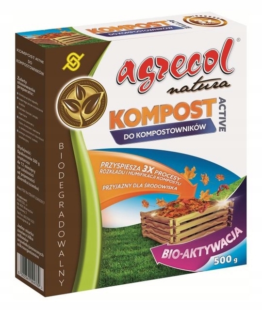 Kompost Active do kompostowników to enzymatyczny biopreparat przyspieszający rozkład materii organiczej np. skoszonej trawy, łęcin, liści, gałęzi. Rozkłada także pnie ściętych drzew. Wpływa na prawidłowy przebieg procesu kompostowania. Wspomaga i przyspiesza tworzenie się substancji humusowych. Nie zagraża pożytecznej faunie glebowej.