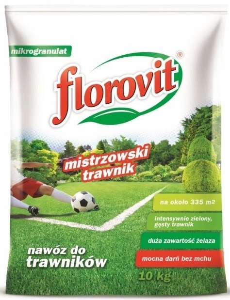 Florovit do trawników z dużą zawartością żelaza, dostosowany jest do wymagań pokarmowych wszystkich gatunków traw, szczególnie do trawników ozdobnych i reprezentacyjnych. Zawarte w nawozie składniki mineralne, dobrane w odpowiednich formach i ilościach stymulują wzrost traw, poprawiają ich zdrowotność oraz zapewniają intensywny zielony kolor trawników. Wysoka zawartość azotu w nawozie zwiększa krzewienie się traw, darń staje się zwarta i silna, co przeciwdziała wzrostowi mchu i zachwaszczeniu. Nawóz jest skuteczny, wydajny oraz wygodny w stosowaniu.