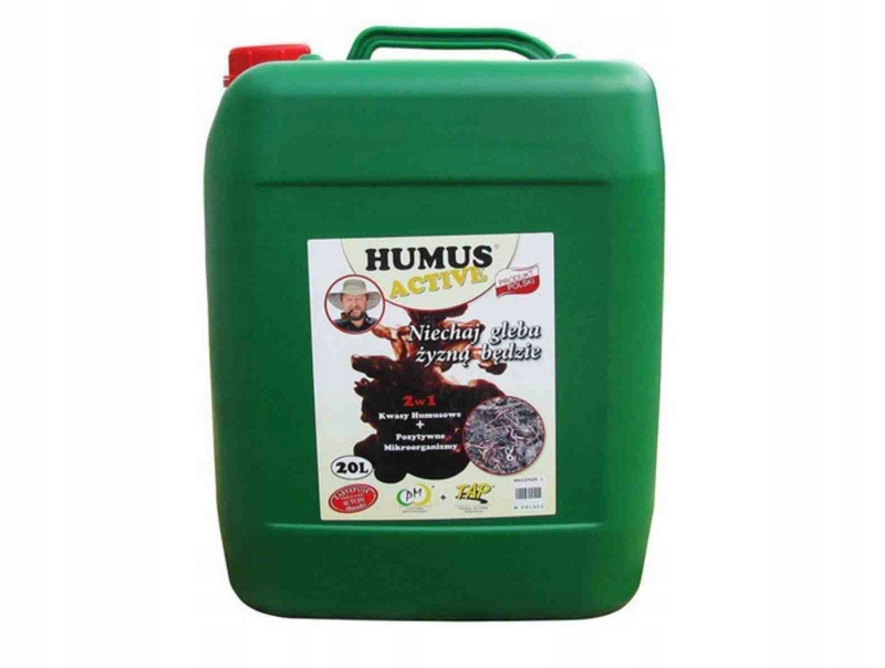 - Badania EkoTech Produkt objęte programem unijnym dowodzą, że 20L. HUMUSU ACTIVE efektywnie zastępuje minimum 10 ton obornika, a na wielu płaszczyznach daje więcej, ponieważ obornik nie zawiera trwałej próchnicy, ani takiej mnogości kultur bakteryjnych.