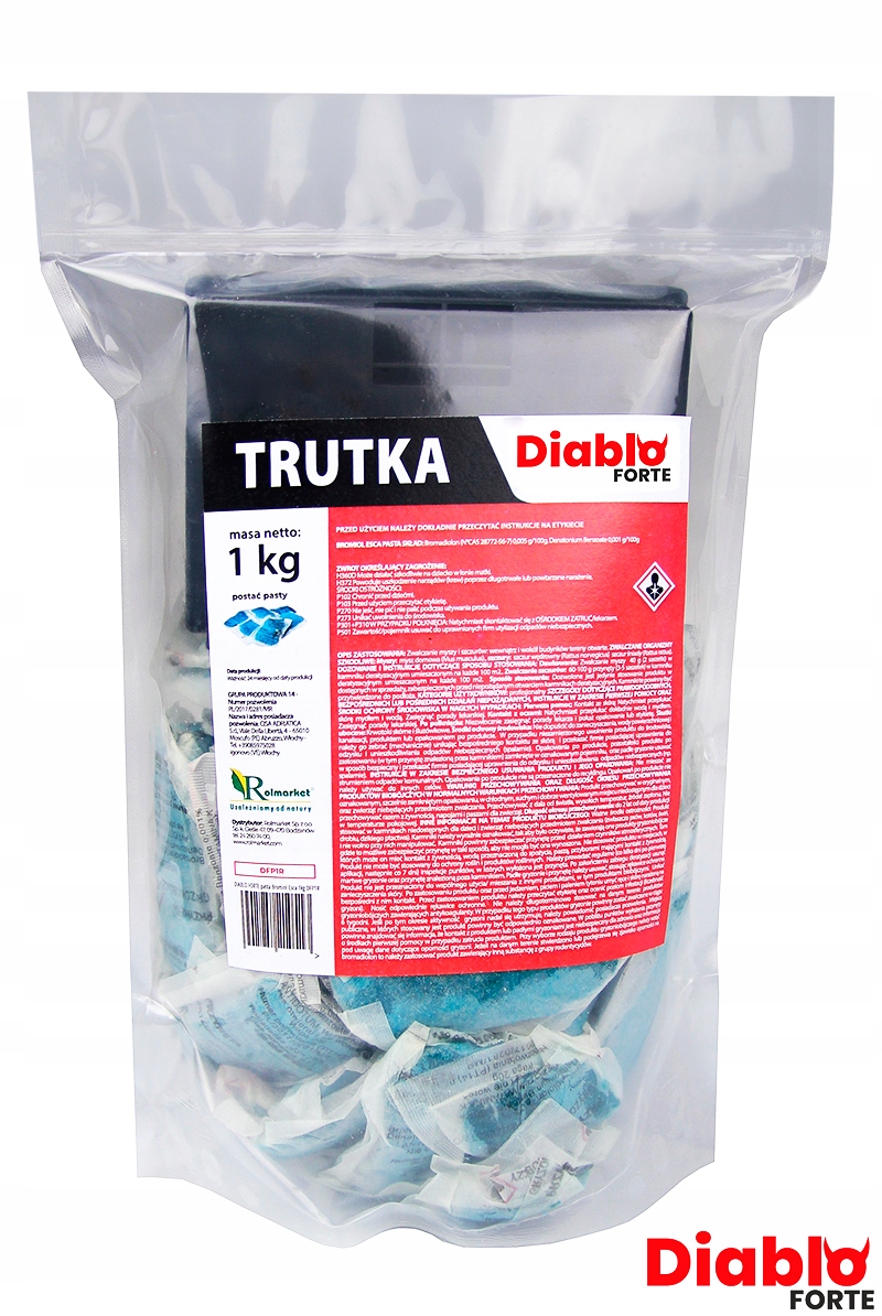 Diablo Forte pasta to niezwykle skuteczna i wydajna trutka na myszy i szczury. Środek ma postać pasty, która oprócz substancji gryzoniobójczej (bromadiolon), posiada w swym składzie smalec oraz aromat waniliowy, pełniące funkcję wabika dla gryzoni. Ponadto smalec wpływa na zachowanie struktury produktu – w okresie zimowym trutka twardnieje, a latem nie spływa z niej olej zawierający substancję czynną.