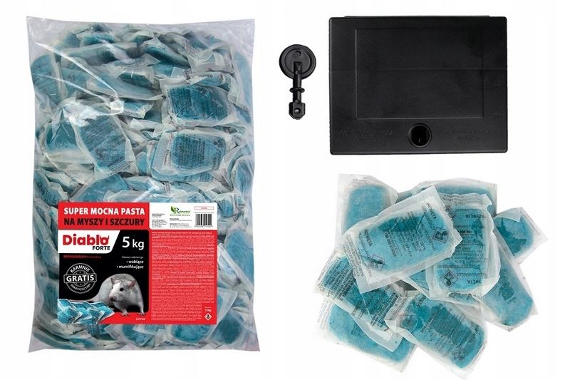 DIABLO FORTE pasta Bromadiolon 10kg DFP5R (2x5kg) - trutka w saszetkach na myszy i szczury + 2 x karmnik deratyzacyjny z kluczykiem MOUSE BOX