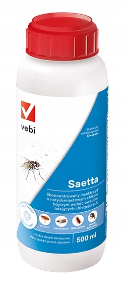 Saetta to koncentrat insektycydu przeznaczony do zwalczania owadów latających takich jak komary, muchy, osy oraz biegających np. karaczany, mrówki, pchły. Saetta doskonale sprawdza się również w zwalczaniu owadów będących szkodnikami magazynowymi: omacnice, trojszyki, wołki zbożowe oraz pająków na powierzchniach gładkich wewnątrz pomieszczeń.
