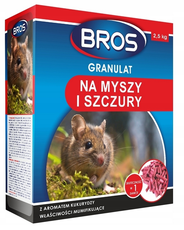 Trutka - granulat na myszy i szczury BROS 2,5 kg Granulat do zwalczania myszy i szczurów wewnątrz budynków.