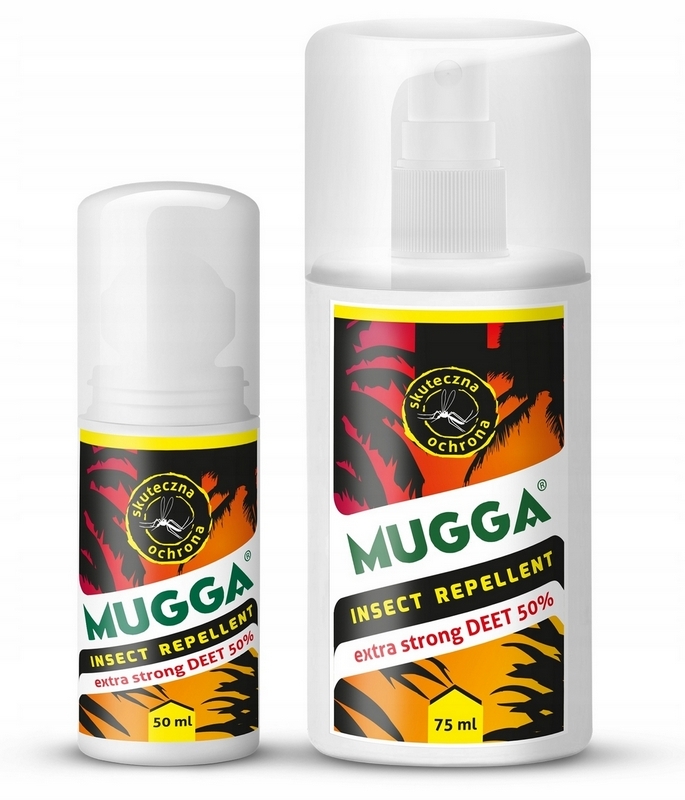 Mugga® Strong Spray oraz Roll-On Ekstremalnie duża zawartość DEET 50%