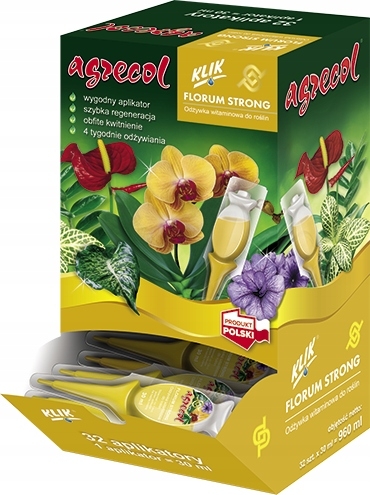 Odżywka witaminowa do roślin Florum Strong została zaprojektowana tak, aby mogła wzmacniać je przez cały rok. Preparat stosować co 1 miesiąc, przeznaczając jeden aplikator na każdą roślinę. Proste stosowanie w trzech krokach: