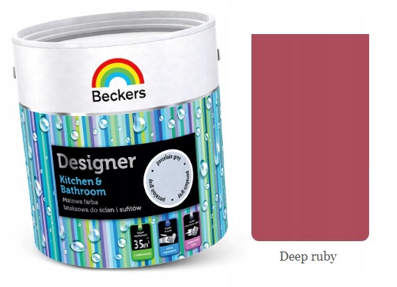 Przeznaczona do dekoracyjnego malowania ścian i sufitów wewnątrz pomieszczeń mieszkalnych, użyteczności publicznej: w tym w obiektach szkolno-wychowawczych i służby zdrowia; zakładach usługowych i produkcyjnych, w tym branży spożywczej bez bezpośredniego kontaktu z żywnością. Malowanie tynków cementowo-wapiennych, podłoży betonowych (tylko jako dekoracja), płyt gipsowo-kartonowych (suchych tynków), tapet z włókna szklanego. Można również używać do malowania drobnych elementów wykończeniowych drewnianych, drewnopochodnych lub metalowych, jako uzupełnienie koloru przy malowaniu ścian, po uprzednim zagruntowaniu podkładem do drewna (elementy drewniane i drewnopochodne), podkładem antykorozyjnym (elementy metalowe). BECKERS DESIGNER KITCHEN & BATHROOM może być również stosowana do renowacji powierzchni uprzednio malowanych farbami wodorozcieńczalnymi lub alkidowymi.