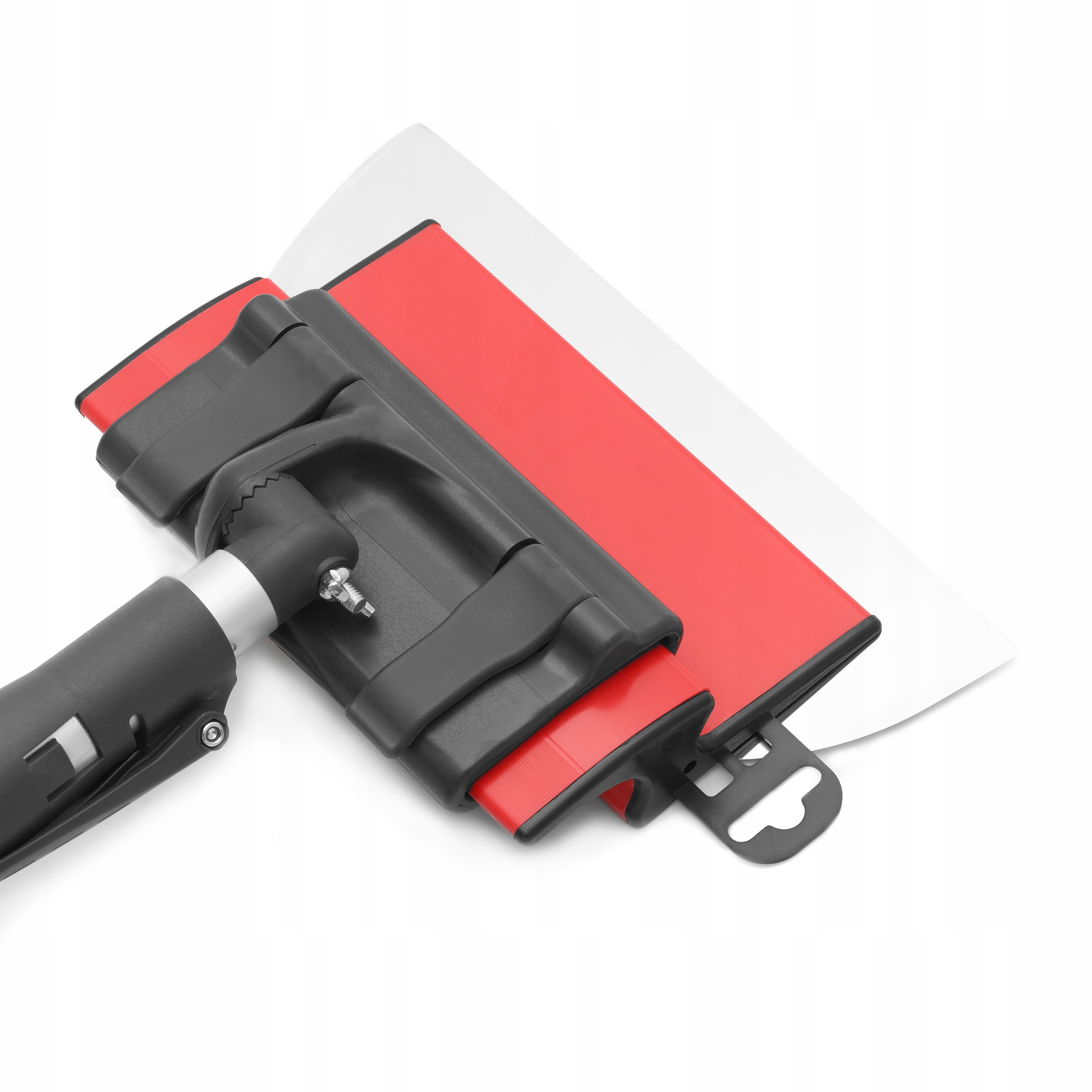Teleskopowa przedłużka umożliwiająca pracę na wysokości z poziomu podłogi, ergonomiczna i pewnie trzymająca nóż do gładzi zdecydowanie przyspieszy i ułatwi pracę na sufitach, czy wysokich ścianach.