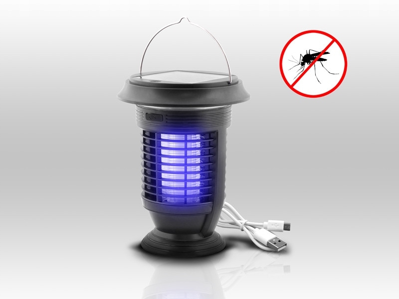 Wielofunkcyjne urządzenie łączące w sobie zalety zewnętrznego źródła światła, paneli solarnych oraz owadobójczej pułapki UV. Lampa owadobójcza