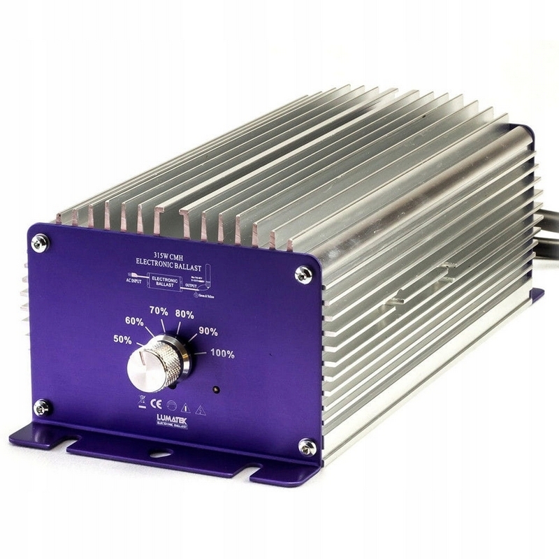 Zasilacz Lumatek 315w CMH w połączeniu z lampami CMH o mocy 315 W zapewnia zdrową wydajność, znakomity poziom wyjściowy PAR na wat zużytej energii i zapewnia znakomite wyniki w przystępnej cenie.