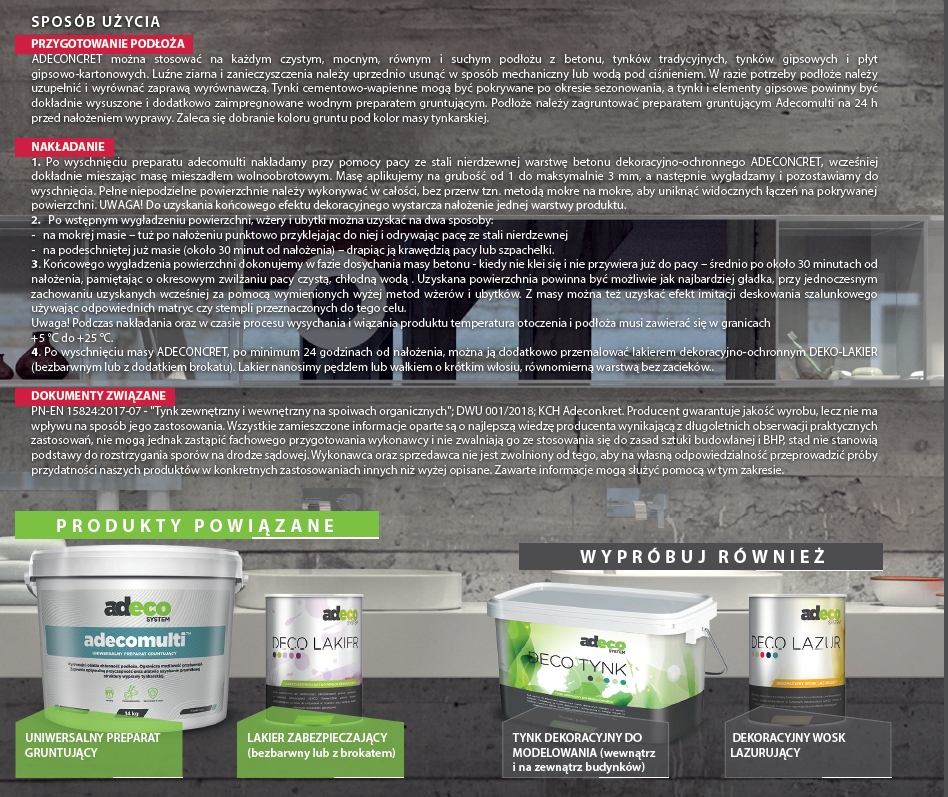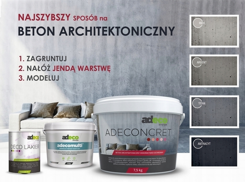 beton architektoniczny ADECONCRET 14 kg + grunt szczepny adecomulti 2 x 1,3 kg + DECO LAKIER 1 litr