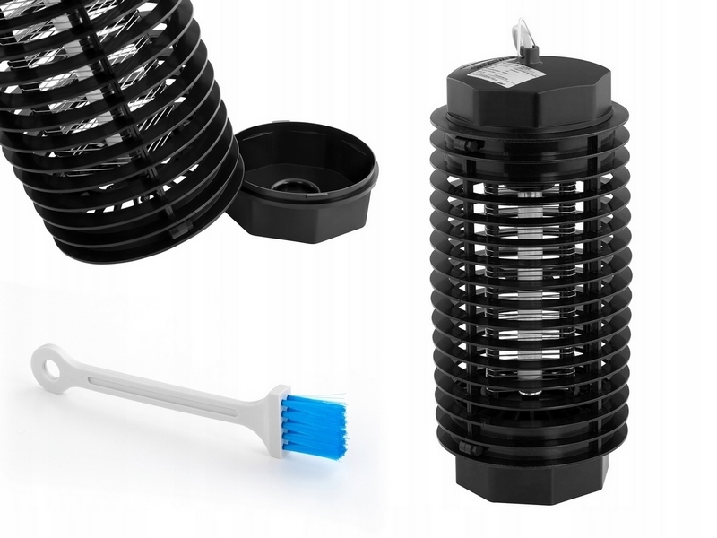 Model CON.MK-6W jest łatwy w transporcie, można go powiesić lub postawić w dowolnym miejscu. Dzięki odkręcanej pokrywie dolnej w prosty sposób usuniemy ciała owadów. Szczoteczka w zestawie posłuży do oczyszczenia metalowej siatki z resztek insektów. Plastikowe żaluzje skutecznie zabezpieczają przed dotknięciem siatki pod napięciem. Lampa posiada II klasę ochrony, czyli nie wymaga uziemienia oraz wyposażono ją we wzmocnioną izolację (podstawową oraz dodatkową). Okaże się niezastąpiona w letnie wieczory oraz na wyjeździe, chroniąc przed gryzącymi komarami i irytującymi muchami!