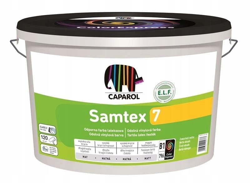Caparol Samtex 7 to farba półmatowa, o satynowym wykończeniu (ma delikatny półpołysk, dzięki czemu bardziej nadaje się do malowania ścian, które mogą się pobrudzić). Caparol Samtex 7 to farba dobrze kryjąca oraz jest odporna na zmywanie - Klasa 2 odporności na szorowanie na mokro.