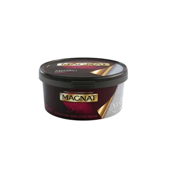 Metallici MAGNAT Style to jednowarstwowa, strukturalna farba na bazie akrylu, dzięki której uzyskujemy strukturę dekoracyjną z metalicznymi cząstkami. W zależności od kąta padania i rodzaju światła oraz wybranej kolorystyki, efekt jest subtelny bądź kontrastowy. Polecana jest do stosowania na ścianach wewnątrz budynków i detalach architektonicznych. Stanowi doskonałe i proste rozwiązania dla osób poszukujących nowoczesnych efektów dekoracyjnych.