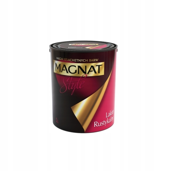 Lakier Rustykalny MAGNAT Style służy do wybarwiania oraz zabezpieczania ścian pokrytych systemami dekoracyjnymi MAGNAT Style. Dostępny jest w atrakcyjnej kolorystyce. Lakier tworzy powłoki odporne na wielokrotne szorowanie i zmywania wodą z dodatkiem detergentów. Produkt znajduje zastosowanie przy wykonywaniu przecierek – wielobarwnego, laserunkowego ozdabiania ścian pomalowanych wcześniej farbą emulsyjną. Charakteryzuje się wydłużonym czasem schnięcia, co ułatwia pracę oraz umożliwia swobodne kształtowanie lub zmienianie tworzonego wzoru. W wersji metalicznej Lakier Rustykalny MAGNAT Style podkreśla efekty uzyskane za pomocą systemów dekoracyjnych MAGNAT Style.