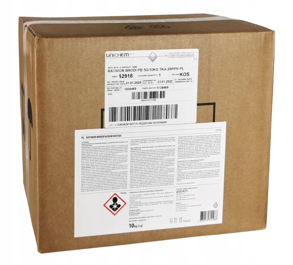 Ratimor Brodifacoum są to bloczki woskowe o wadze 5 g do zwalczania szczurów (Szczur wędrowny) i myszy (Mysz domowa) we wnętrzach i wokół budynków.
