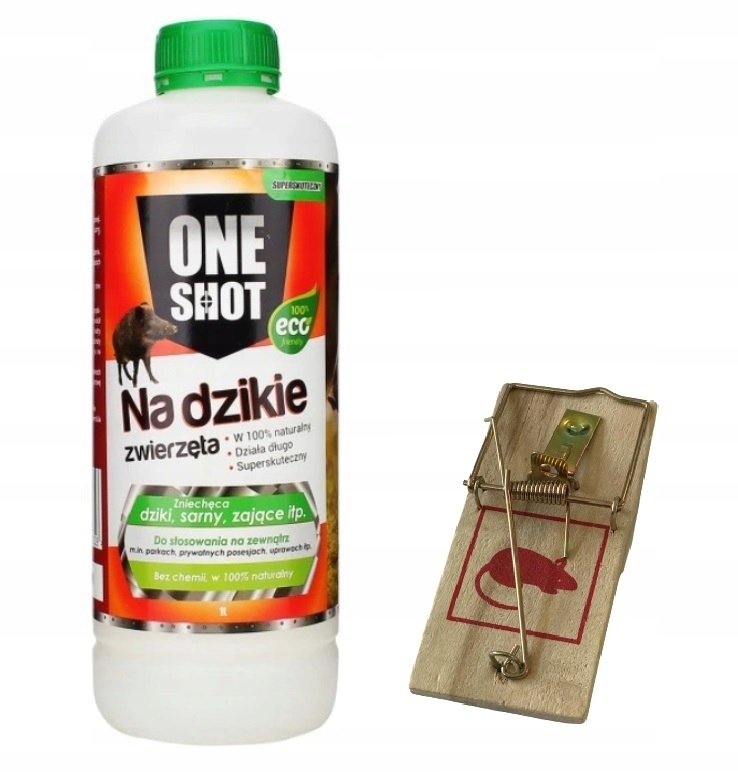 ONE SHOT NA DZIKIE ZWIERZĘTA ODSTRASZACZ O DŁUGOTRWAŁYM DZIAŁANIU NA DZIKI, SARNY, ZAJĄCE 1L + GRATIS PUŁAPKA NA MYSZY I SZCZURY