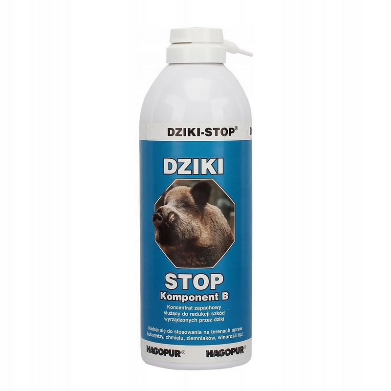 Preparat DZIKI-STOP służy do zredukowania szkód wyrządzonych przez dziki na terenach upraw kukurydzy, winorośli, chmielu, ziemniaków, łącznie z polami i łąkami. Skutecznie chroni uprawy bez ponoszenia kosztów budowy ogrodzenia. Produkt stworzony na bazie środków zapachowych identyczny z naturalnymi, które sygnalizują dzikom niebezpieczeństwo spowodowane przez pojawienie się ich naturalnych wrogów - duża skuteczność oraz rozległy obszar zastosowania.