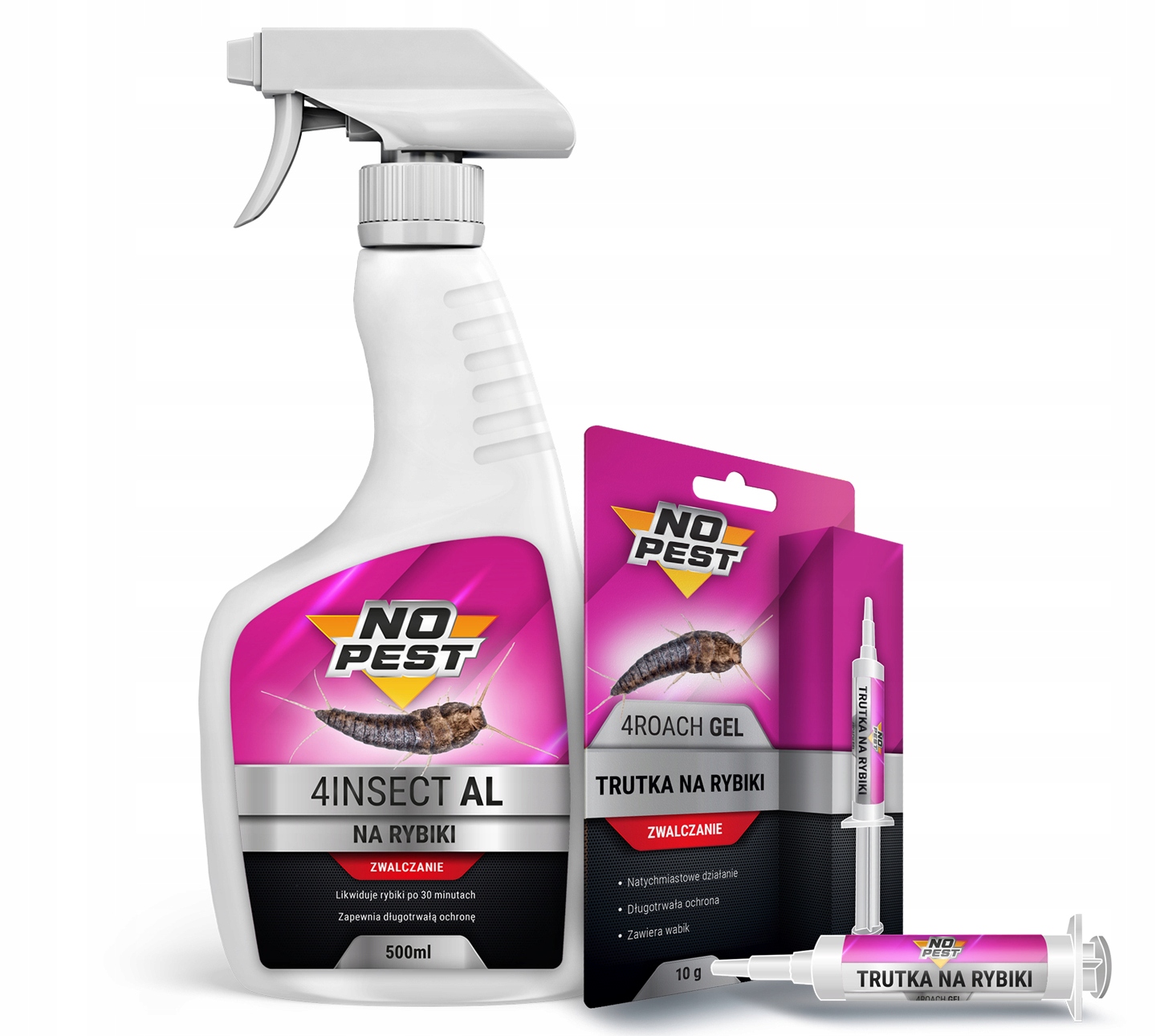Zestaw, środek, preparat, płyn, trutka na rybiki, srebrzyki. Spray + żel do zwalczania rybików cukrowych 4INSECT NO PEST®
