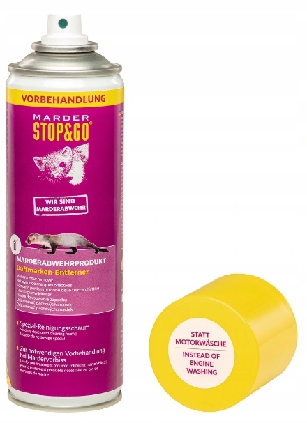 Odstraszacz kun w sprayu. Koncentrat o długotrwałym działaniu wydziela zapach odbierany przez kuny jako „niebezpieczny wróg”. Brak konieczności spryskiwania dużych powierzchni wszystkich narażonych elementów. Wystarczy nanieść spray punktowo na dołączone „płytki zapachowe”, które należy przykleić i regularnie spryskiwać koncentratem zapachowym. Uniwersalny spray do stosowania w samochodzie, domu, ogrodzie lub wiatach samochodowych.