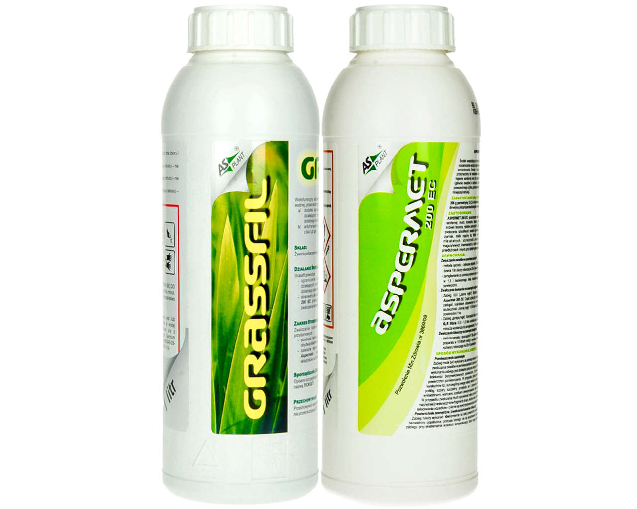 Ekstremalnie skuteczny, profesjonalny zestaw eliminujący insekty - ASPERMET 200 EC + Utrwalacz oprysku GRASSFIL
