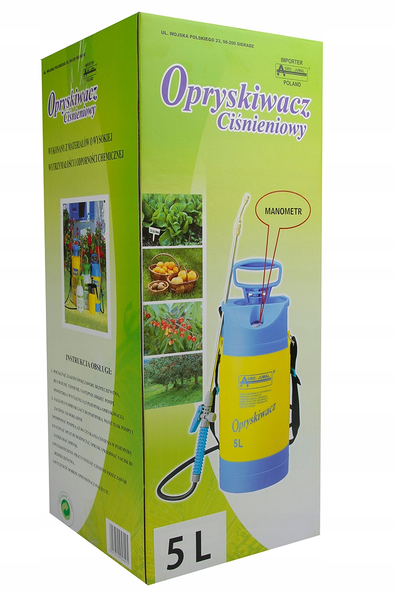 Ręczny opryskiwacz ciśnieniowy z manometrem o pojemności 5 litrów wykonany wysokiej jakości materiałów odpornych na korozję.