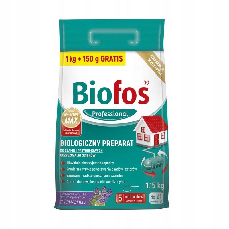 Biofos Professional to produkty przeznaczone do utrzymania szamb oraz przydomowych oczyszczalni ścieków. Preparaty zawierają innowacyjną formułę Bio-Active Max ze składnikiem aktywnym biologicznie. Są to bezpieczne dla ludzi, zwierząt i środowiska bakterie, które działają kompleksowo wewnątrz domowego systemu instalacji sanitarnej, przyspieszając procesy rozkładu i upłynniania ścieków. Preparat Biofos Professional zawiera zarówno szczepy bakterii tlenowych jak i beztlenowych. Dzięki temu działa w każdych warunkach. Regularne stosowanie preparatów redukuje uciążliwe zapachy, zapewnia zmniejszenie ilości osadu, upłynnienie zawiesiny oraz skuteczną biodegradację zanieczyszczeń. W praktyce pozwala to na rzadsze wywozy nieczystości. Dla wielu klientów istotną zaletą korzystania z tych preparatów będzie zapobieganie zapychaniu odpływów, których mechaniczne czyszczenie jest bardzo kosztowne. Produkty Biofos Professional upłynniają ścieki, usprawniając proces rozkładu i wspomagając drożnośc rur. Produkty do szamb i przydomowych oczyszczalni ścieków, dostępne są w różnych pojemnościach, w formie tabletek i proszku. Wybór odpowiedniego produktu nie powinien jednak nastręczać trudności, mimo, że są to produkty specjalistyczne. Każdy produkt na naszej stronie zawiera opis dawkowania i kartę charakterystyki. Preparaty do przydomowych oczyszczalni różnią się między sobą nieznacznie, ale mogą zadziałać skutecznie tylko wtedy, kiedy są właściwie podane. Największe znaczenie ma zrównoważone i zgodne z instrukcją aplikowanie. Biofos Professional specjalizuje się w rozwiązaniach, poprawiających funkcjonowanie szamb i oczyszczalni ścieków a skuteczność preparatów tej marki potwierdzają badania wykonane przez Wydział Instalacji Budowlanych, Hydrotechniki i Inżynierii Środowiska Politechniki Warszawskiej. Oznacza to wysoką skuteczność działania i bezpieczeństwo dla użytkowników i otoczenia.
