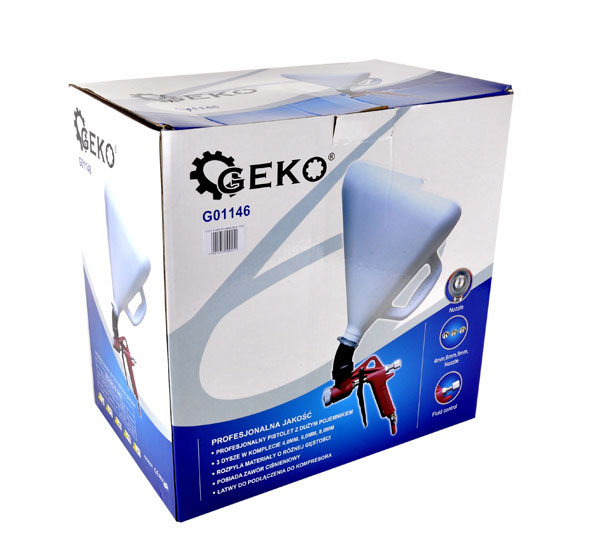 - pojemnik pistoletu wyposażony jest w plastikowe kolanko oraz jest do połowy zakryty, co umożliwia malowanie sufitów