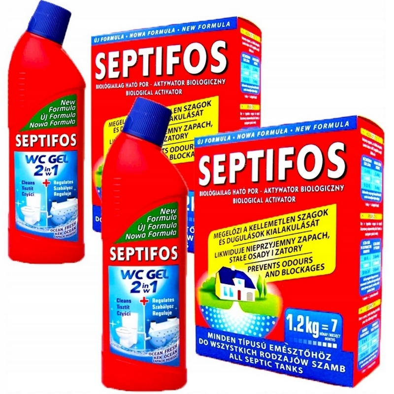 SEPTIFOS 2x1,2 kg + 2xSEPTIFOS ŻEL DO WC - SUPER ZESTAW DO SZAMB I OCZYSZCZALNI