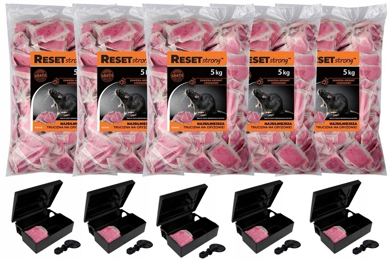 Reset Strong to niezwykle skuteczna i wydajna trutka na myszy i szczury. Środek ma postać pasty, która posiada w swym składzie niezwykle silny antykoagulant III generacji, czyli brodifakum, dzięki tej substancji gryzonie ulegają szybszemu zatruciu. Ponadto preparat ma łososiowy aromat, który sprawia, że pasta wydaje się gryzoniom bardziej apetyczna, dlatego pochłaniają większe ilości preparatu już za pierwszym razem