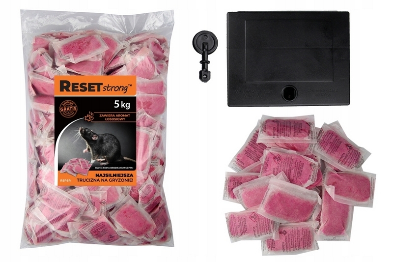 Reset Strong to niezwykle skuteczna i wydajna trutka na myszy i szczury. Środek ma postać pasty, która posiada w swym składzie niezwykle silny antykoagulant III generacji, czyli brodifakum, dzięki tej substancji gryzonie ulegają szybszemu zatruciu. Ponadto preparat ma łososiowy aromat, który sprawia, że pasta wydaje się gryzoniom bardziej apetyczna, dlatego pochłaniają większe ilości preparatu już za pierwszym razem