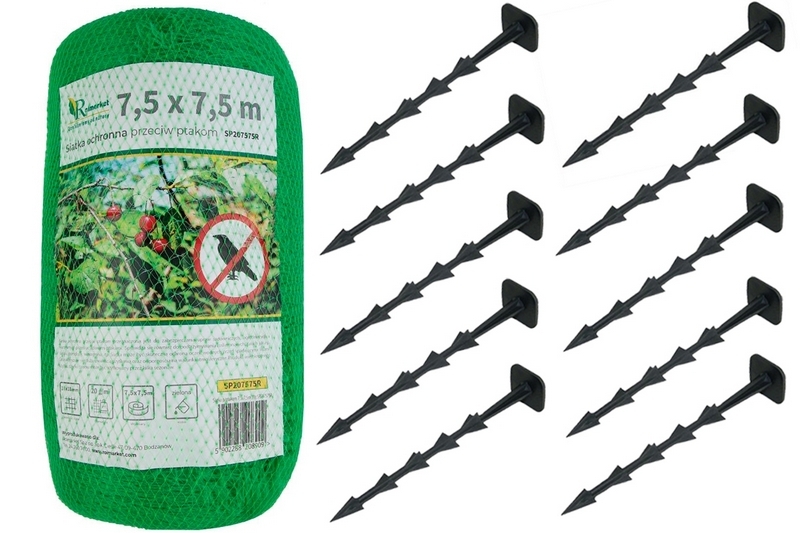 Siatka przeciw ptakom 7,5x7,5m 20g SP207575R Rolmarket + 10 kotew mocujących