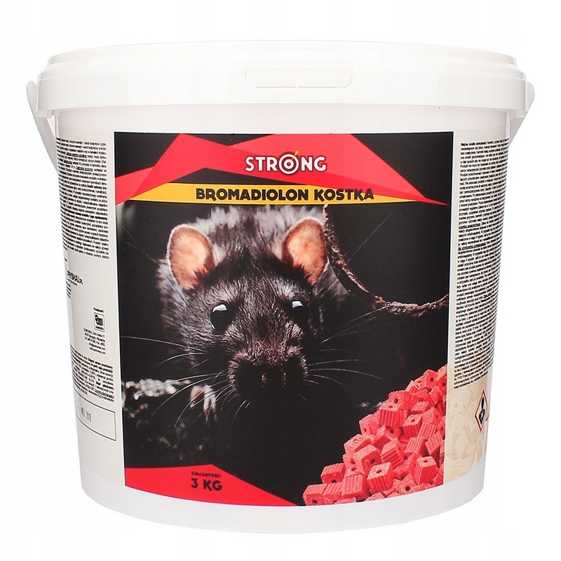 STRONG BROMADIOLON KOSTKA nawet w małych dawkach upośledza krzepnięcie krwi. Działa na szczury śniade i wędrowne, myszy itp., w tym na gryzonie odporne na kumarynę i warfarynę.