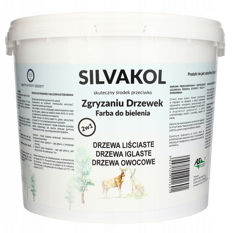 SILVAKOL to preparat w formie białej farby o działaniu odstraszającym, przeznaczonym do ochrony sadzonek i drzewek drzew liściastych i iglastych przed zgryzaniem przez zające, sarny i inne zwierzęta. Środek skutecznie odstrasza dziką zwierzynę. Ochrona drzewek przed zgryzaniem to istotny zabieg zabezpieczający pędy oraz korę drzew przed uszkodzeniami wynikającymi z żerowania dzikich zwierząt. Sarny, jelenie oraz zające szczególnie w okresie zimowym mogą wyrządzić znaczne szkody w związku z poszukiwaniem pokarmu.
