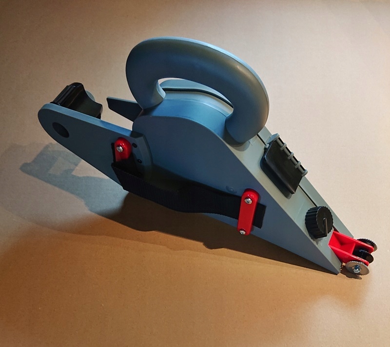 - Posiada regulowane pokrętło kontroli masy pozwala dopasowywać i utrzymywać stałą warstwę masy pod taśmą. Pomaga utrzymać stałą grubość masy, co może zapobiec tworzeniu się pęcherzy w przyszłości.
