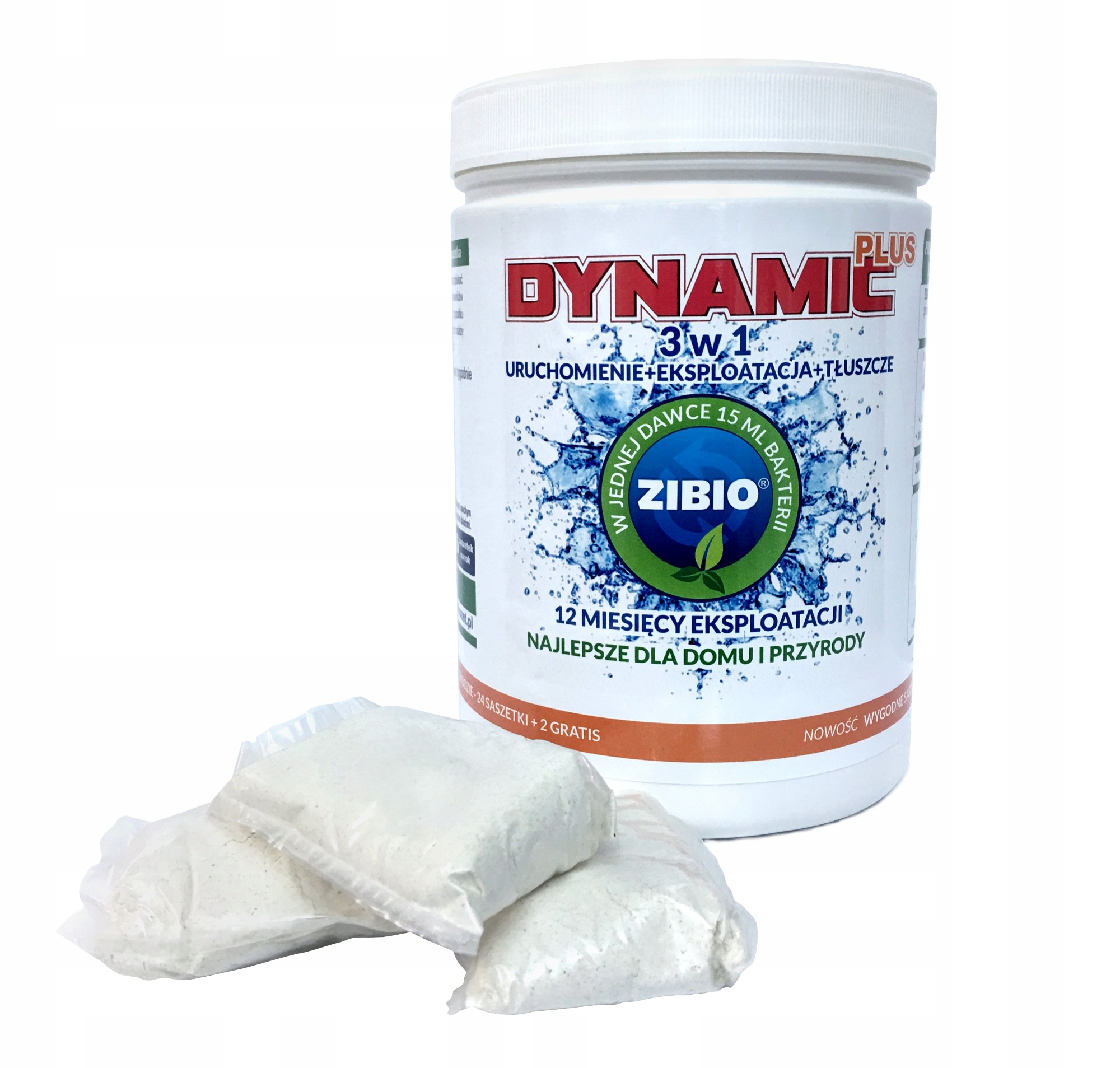 ZIBIO DYNAMIC PLUS 3w1 do szamb i przydomowych oczyszczalni ścieków to bardzo wydajny preparat biologiczny. Zawiera unikalny kompleks mikroorganizmów i enzymów, który przyspiesza proces rozkładu i upłynniania ścieków.