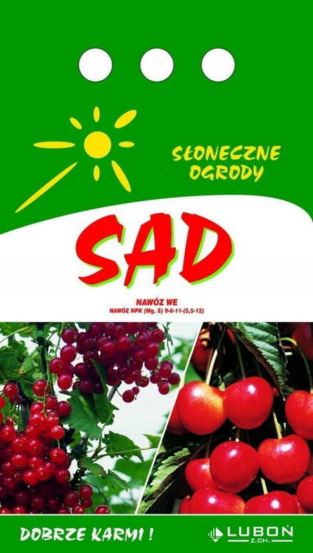 ,,Sad" to nowoczesny, granulowany nawóz mineralny, o niskiej zawartości chloru. Wszystkie jego składniki są łatwo przyswajalne. Nawóz poprawia gruzełkowatą strukturę gleby, pozwalając lepiej wykorzystać składniki mineralne. Nawóz dostępny w workach 5 kg.